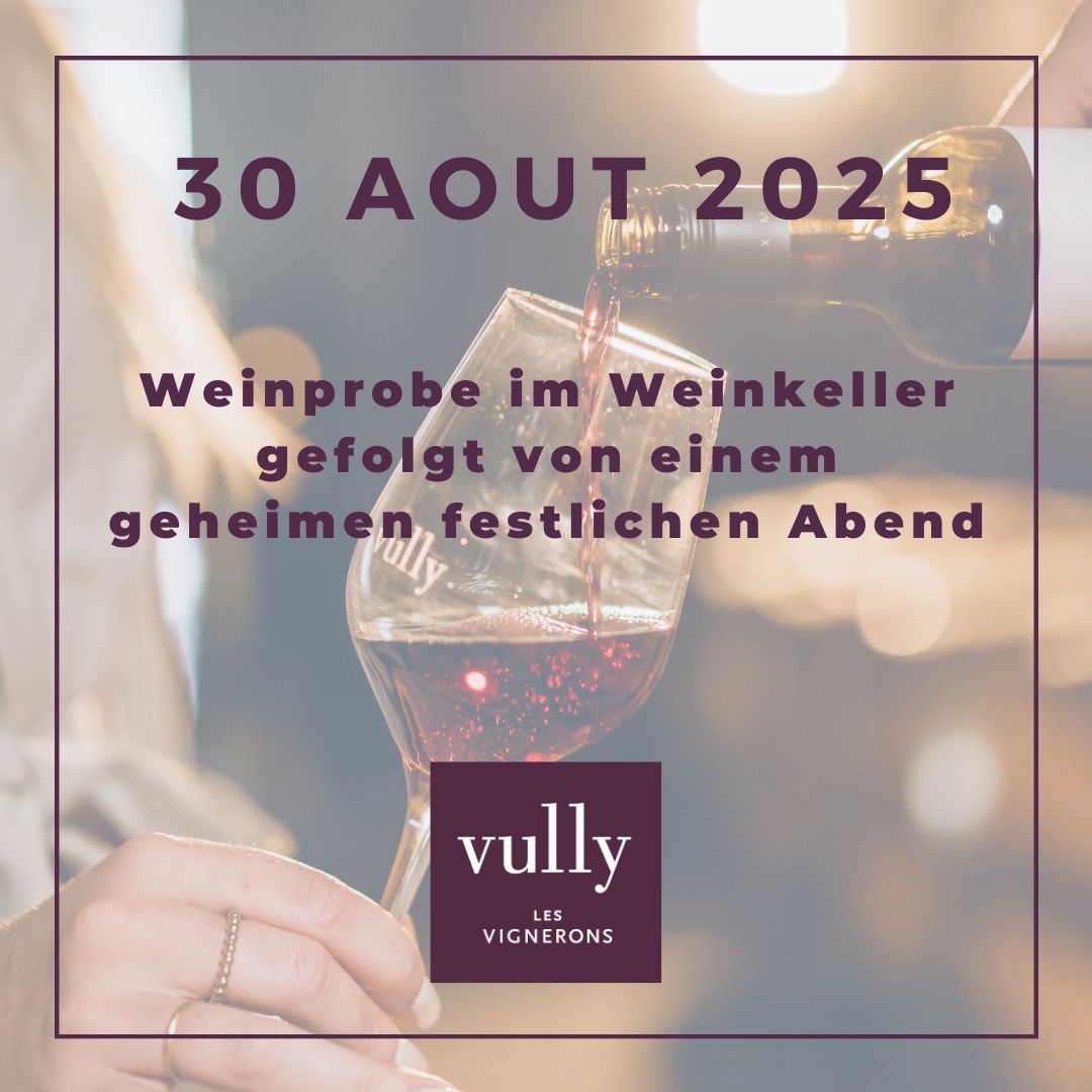 Nach diesem intimen Einstieg in den Kellern des Vully treffen sich alle an einem gemeinsamen, bis zuletzt geheim gehaltenen Ort – für einen festlichen Abend mit Musik, geselliger Atmosphäre und natürlich den Weinen, auf die unsere Region stolz ist.